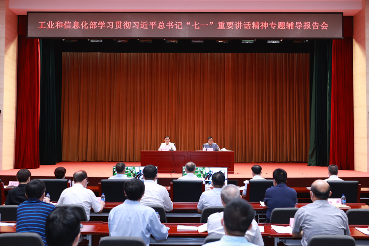 把握精髓要义精神实质 推动学习贯彻走深走实 ——工业和信息化部举办学习贯彻习近平总书记“七一”重要讲话精神 专题辅导报告会发布时间:2021-07-15 16:10 来源:机关党委 办公厅 工信微报 2021年7月15日,工业和信息化部举办学习贯彻习近平总书记“七一”重要讲话精神专题辅导报告会,邀请党史学习教育中央宣讲团成员、中央党史和文献研究院原院务委员陈晋同志作辅导报告。部党组书记、部长、部党史学习教育领导小组组长肖亚庆主持报告会。